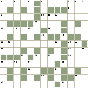 | Hor 1 Sweet crystals4 She has excellent brains and no guts8 Jesus9 A fabric10 Inflatable & elastic13 Inuk16 A moon17 The person to whom I speak20 In a motionless state22 100 cubic millimeter24 Denotes an executable file26 A rhodent28 Swing30 Consumed32 Clapton35 Swap spit36 Alien39 The person who speaks to you40 Relatives41 On this location42 Eat43 Cut |